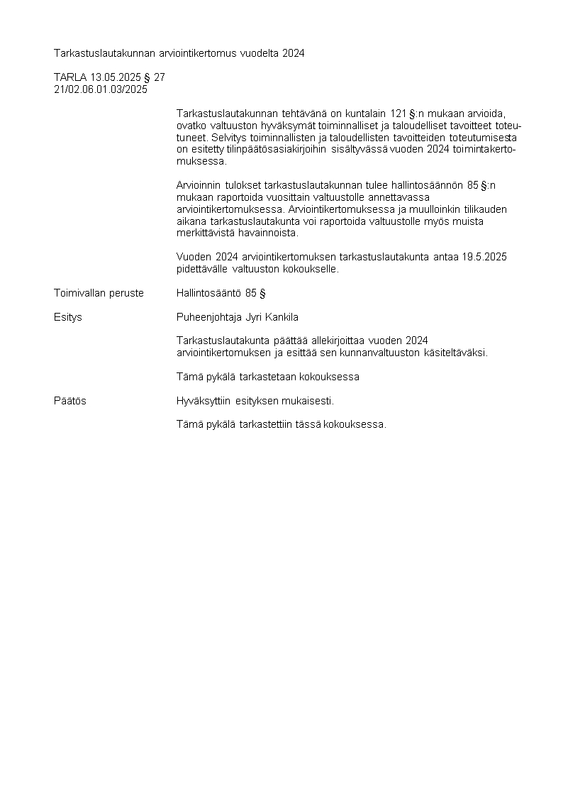 Pöytäkirja 13.05.2025/Pykälä 27
