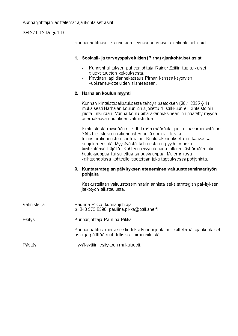 Dynasty tietopalvelu Haku RSS Pälkäneen kunta