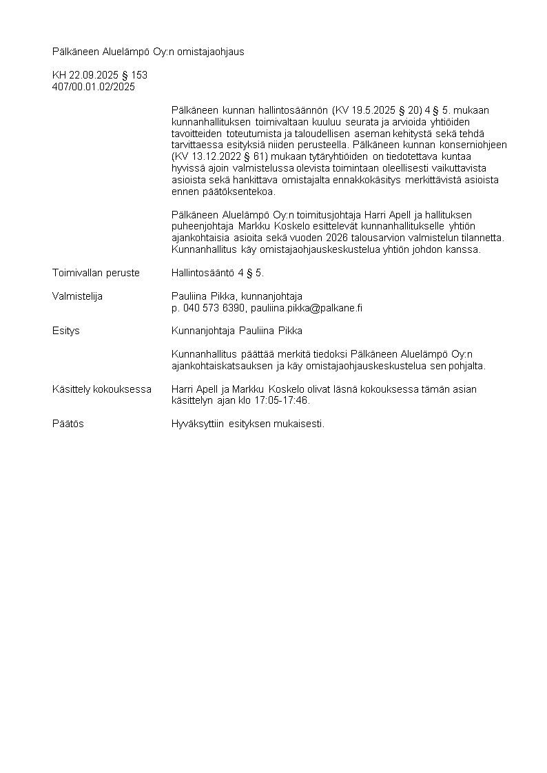 Dynasty tietopalvelu Haku RSS Pälkäneen kunta