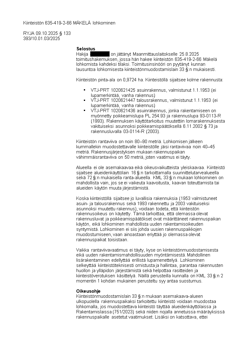Pöytäkirja 09.10.2025/Pykälä 133