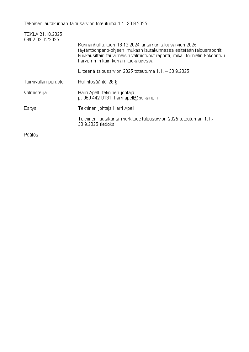 Liite 2 Talous - Tekniset palvelut 9_2025