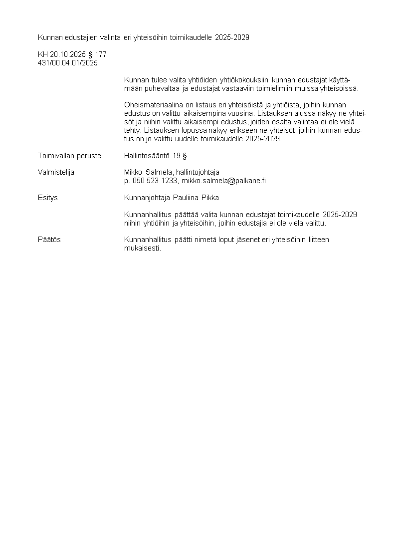 Pöytäkirja 20.10.2025/Pykälä 177