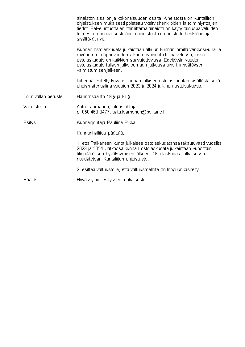 | 9 | Pälkäneen kunnan julkinen ostolaskudata, aineiston kuvaus | |