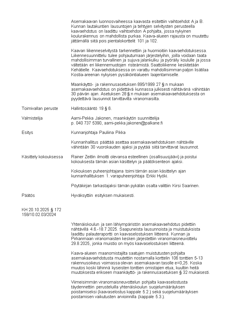 Pöytäkirja 20.10.2025/Pykälä 172