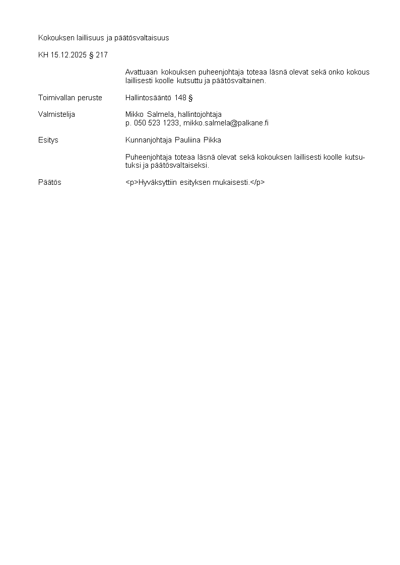 Pöytäkirja 15.12.2025/Pykälä 217