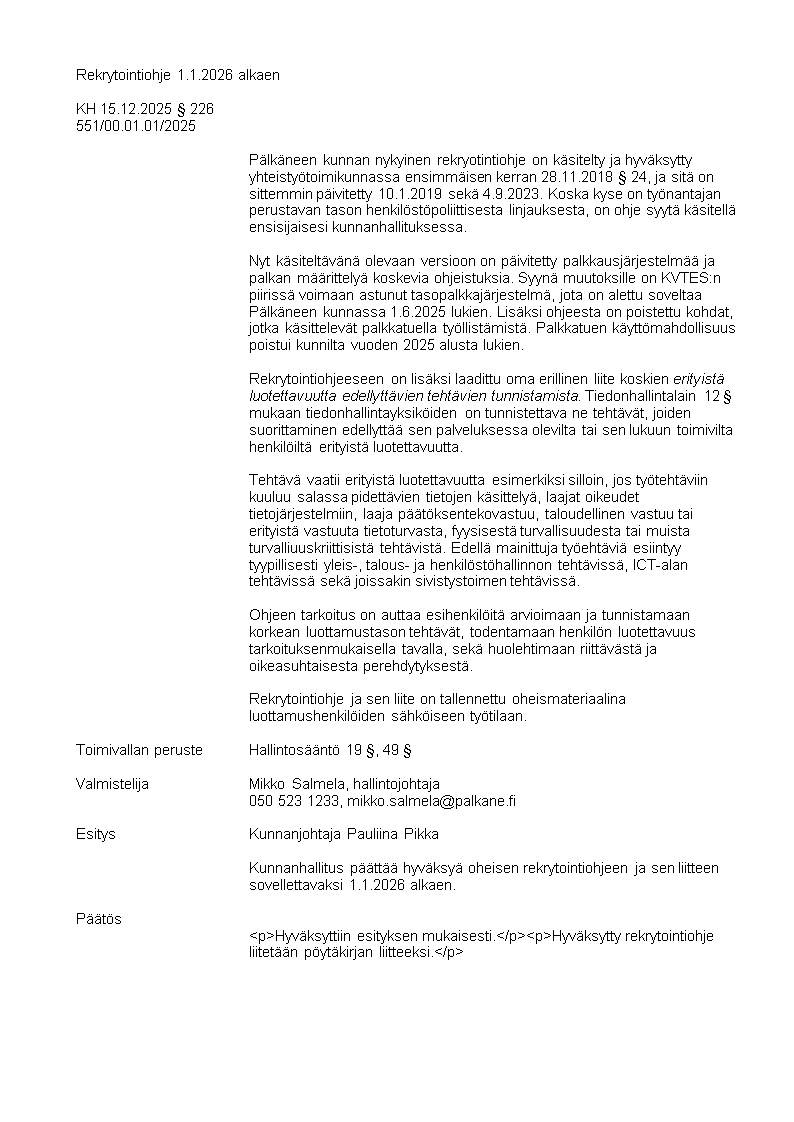 Pöytäkirja 15.12.2025/Pykälä 226