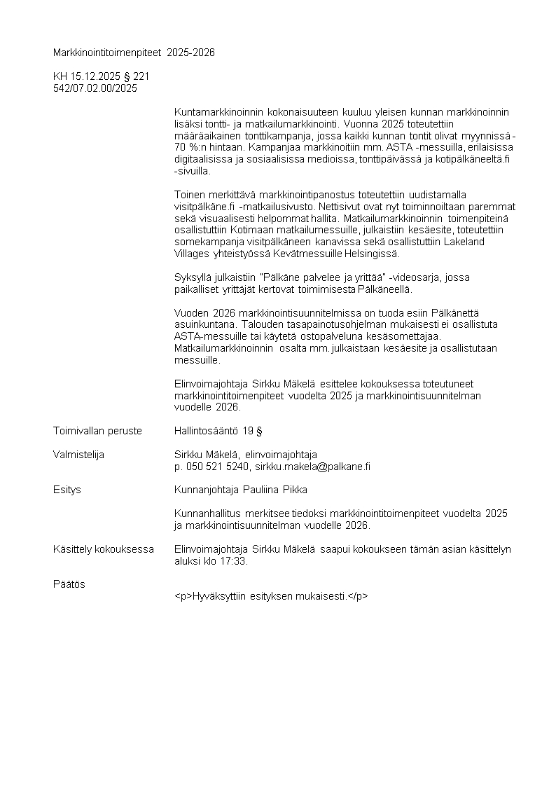 Pöytäkirja 15.12.2025/Pykälä 221